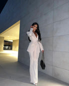 Introducing our LADY IN A MEETING trousers and blazer that are made for Business woman! Tailored to fit and flatter your natural curves, the high rise waist and for the perfect silhouette. Perfect for classic office attire or even a night on the town.