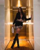 The compliments won't stop rolling in when you're wearing the crystal set! The dress is adorn in diamante which is so shiny and eye-catching! Pair with long earrings and high heels and head out for the night!