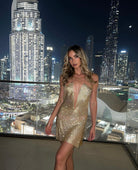 Slip into sparkles for your next night out. Our PRIVILEGE dress provides a tailored update to this quintessential night out staple—with all-over crystals carefully placed throughout the dress.