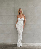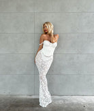 Wear this daring dress with a transparent lace design and an adjustable corset to enhance your figure.