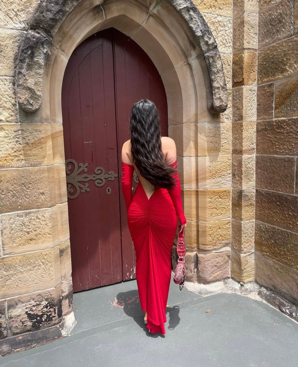 She is classic and timeless. Introducing this form fitted silhouette features a classic high neckline and back detail. Get ready to steal attention wherever you are, a design created exclusively in detail.