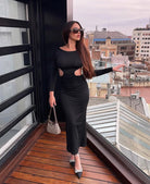 Designed in our premium modal fabric that sculpts your silhouette and creates an effortlessly flattering silhouette, BELLE features a high round neck, ultra sleek, extra long sleeves and open back. Falling to a maxi length. Complete with a narrow split at the back for ease of movement, we love this sleek maxi dress for date nights, off-duty days and beyond.
